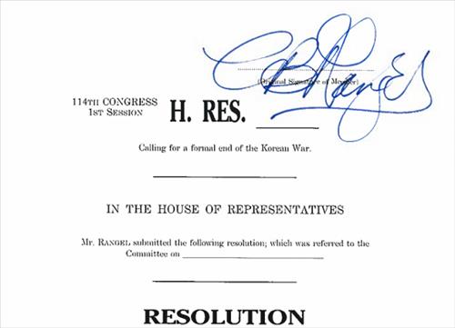 | △ 랭글 의원 등 미국 하원의원 3명이 제출한 한국전 종전 결의안 첫 페이지 일부 |