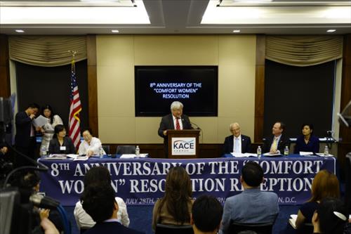 혼다 의원은 28일(현지시간) 워싱턴D.C. 레이번 의원회관에서 열린 군위안부 결의안 채택 8주년 기념식에서 "독일에서는 (유대인) 강제수용소가 없었다고 말하는 일은 위법"이라며 일본 정부가 군위안부 문제 등 과거사를 있는 그대로 인정해야 한다고 지적했다.