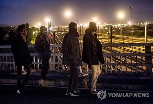 (서울=연합뉴스) 백나리 기자 = 영국행을 원하는 난민 2천여 명이 28일(현지시간) 영불 해저터널인 유로터널로 진입을 시도해 극심한 정체가 빚어졌다.