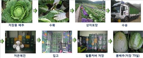 봄 배추는 수확 후 저온에서 예비 건조를 하고, 미세한 구멍이 있는 고밀도 폴리에틸렌 필름으로 상자를 덮어 0.5℃ 안팎 온도로 저장한다. 이렇게 하면 기존에 45일이던 저장 기간을 75일까지 늘릴 수 있다.