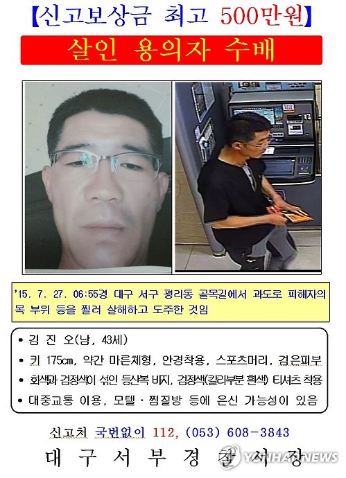 (대구=연합뉴스) 김용민 기자 = 40대 주부 살해 사건을 수사 중인 대구서부경찰서는 30일 유력한 용의자를 전국에 공개 수배했다.