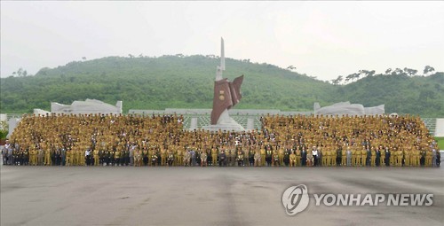 기념사진은 '조국해방전쟁 참전열사묘' 앞에서 촬영됐다.
