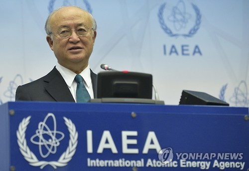 | △ 이란 정부가 핵시설을 방문할 유엔 산하 국제원자력기구(IAEA) 사찰단에 미국인이나 캐나다인이 참여하지 못하도록 하겠다는 입장을 밝혔다. 사진은 이란핵협상 타결 후 기자회견하는 IAEA 사무총장. (EPA=연합뉴스 자료사진) |