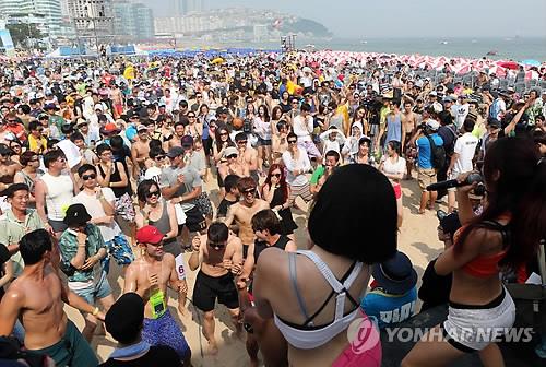 물총, 물 분사기 등을 손에 든 수천 명의 피서객이 서로 물을 쏘며 축제 분위기를 달군다.
