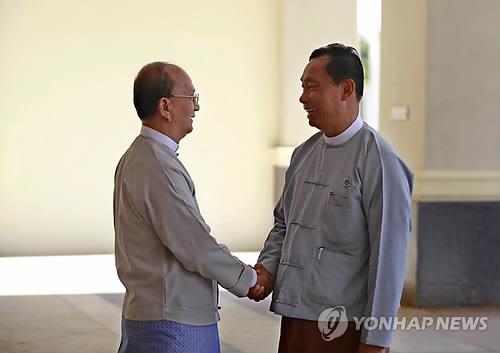 | △ 테인 세인 미얀마 대통령(왼쪽)과 슈웨 만 하원의장(EPA=연합뉴스) |