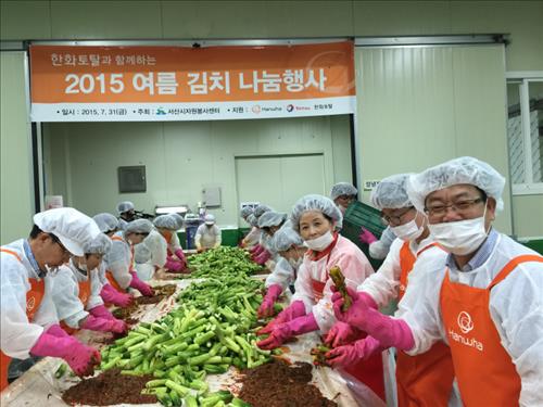 (서울=연합뉴스) 김연숙 기자 = 한화토탈과 서산시는 31일 충남 서산 성연면에 있는 김치공장에서 '여름 김치나눔 행사'를 열었다.