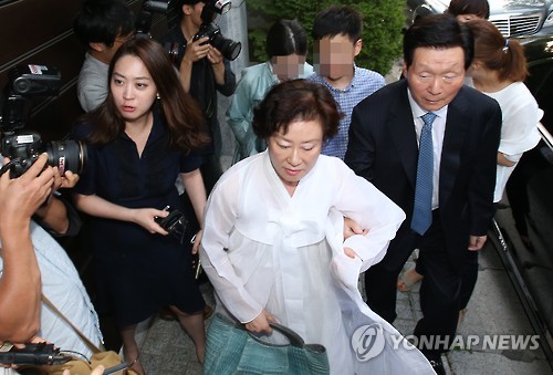 | △ 신동주 부회장 집으로 들어서는 신준호 (서울=연합뉴스) 한종찬 기자 = 신격호 롯데그룹 총괄회장의 동생인 신준호 푸르밀 대표이사 회장(오른쪽)이 한일랑 여사와 함께 31일 오후 서울 성북동 신동주 전 일본롯데홀딩스 부회장의 집으로 들어서고 있다. 2015.7.31 saba@yna.co.kr |