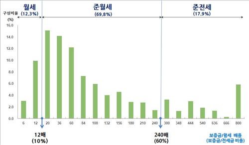 국토부 관계자는 "현재는 '월세 대 보증금 비율'이나 '보증금 대 전세 비율' 어느 것을 기준으로 삼아도 (분류 결과는) 대체로 일치한다"며 "제1지표는 '월세 대 보증금 비율'"이라고 설명했다.