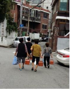 이들은 노인들이 마사회로부터 받은 선물을 들고가고, 마사회 측이 주민에게 물품을 나눠주는 장면이 담긴 사진도 함께 배포했다.