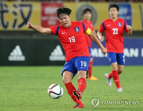 | △ 슛 하는 김영권 (우한<중국>=연합뉴스) 최재구 기자 = 2일 중국 후베이성 우한스포츠센터에서 열린 동아시안컵 축구대회 한국과 중국의 경기에서 한국 김영권이 슈팅하고 있다. 2015.8.3 jjaeck9@yna.co.kr |