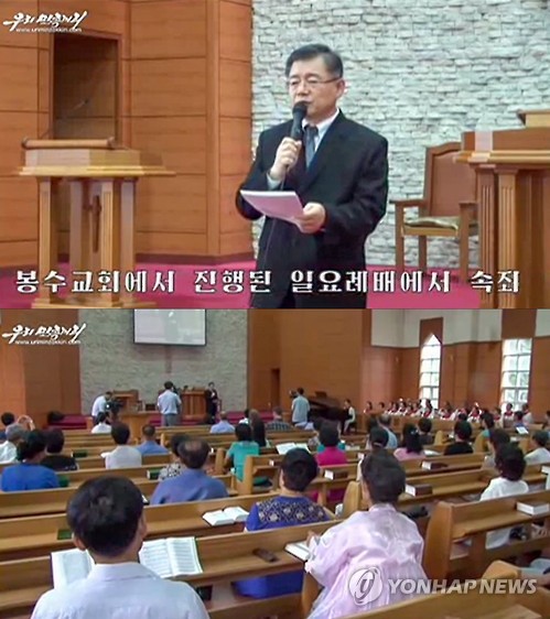 (서울=연합뉴스) 임은진 기자 = '국가전복 음모' 혐의로 북한에 억류 중인 한국계 캐나다인 임현수(60) 목사가 평양 봉수교회에서 열린 예배에 참석해 자신의 반북 행위에 '속죄'했다.