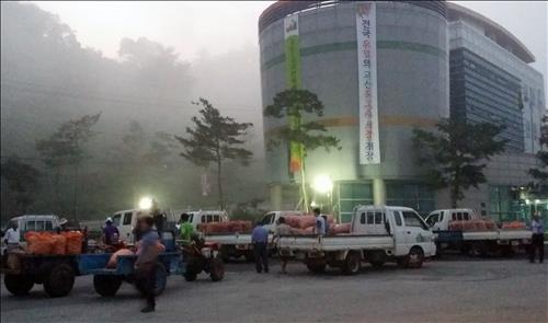 이날 오전 5시에 개장한 홍고추 시장에는 생산 농민과 도시 소비자 등 100여 명이 몰렸다.