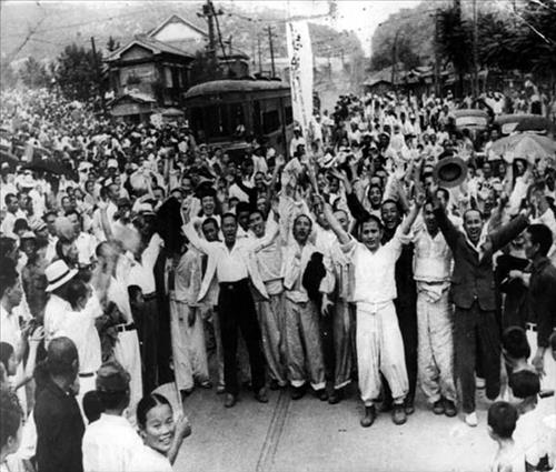 사진 속에는 거리에 나와 광복을 축하하며 함께 기뻐하는 시민의 모습이 담겨있다.