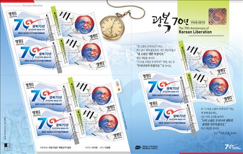 (서울=연합뉴스) 양정우 기자 = 우정사업본부는 '광복 70년'을 기념하는 우표 2종 102만장과 소형 시트 15만장을 발행한다고 3일 밝혔다.