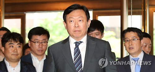 | △ 입국 뒤 롯데호텔 찾은 신동빈 회장 (서울=연합뉴스) 한종찬 기자 = 롯데그룹의 경영권을 둘러 싼 다툼의 끝이 보이지 않고 있는 가운데 신동빈 롯데그룹 회장이 3일 오후 서울 소공동 롯데호텔 신관 로비로 들어서고 있다. 이 호텔 신관 34층에는 신격호 롯데그룹 총괄회장의 집무실이 위치해 있다. |