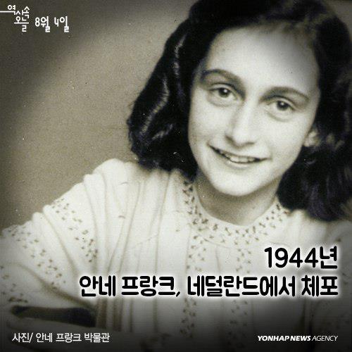 1944년 8월4일 가족과 함께 나치에 체포된 소녀는 '안네의 일기'로 유명한 안네 프랑크(Anne Frank·1929∼1945). 나치 패망만 기다리며 2년 넘게 숨 막히게 이어간 은신 생활이 끝나는 순간이었다. 안네는 부모, 언니와 함께 수용소로 끌려갔다. 안네는 체포 6개월 만인 1945년 2월 베르겐 벨젠(Bergen-Belsen) 수용소에서 굶주림과 추위에 시달리다 장티푸스로 숨졌다.