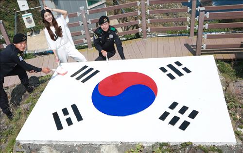 서경덕·경비대원 힘 모아 독도 태극기 새 단장