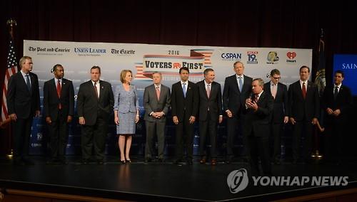 (뉴욕=연합뉴스) 김화영 특파원 = 미국 대선 출마를 선언한 공화당 대선 예비후보 14명이 3일(현지시간) 저녁 미 뉴햄프셔 주 맨체스터에 모였다.