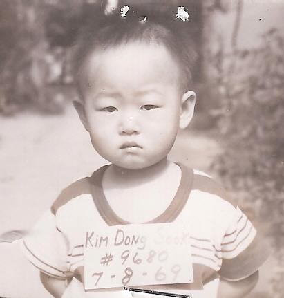 사진 속 아이의 가슴에는 'Kim Dong Sook'(이름), '#9680'(입양번호), '7-8-69'(생년월일·1969년 7월 8일)라고 적힌 종이가 붙어 있다.