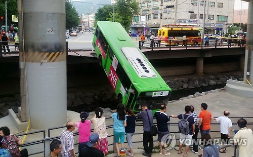(서울=연합뉴스) 이효석 기자 = 1224번 시내버스가 4일 오후 4시32분께 서울 노원구 상계동 상계역 근처에서 도로를 이탈해 가드레일을 뚫고 하천으로 추락했다.