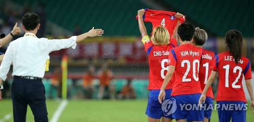 (우한=연합뉴스) 김태종 기자 = 태극낭자들이 2015 동아시아축구연맹(EAFF) 축구선수권대회(이하 동아시안컵) 일본전에서 동료들간의 끈끈한 정을 과시했다.