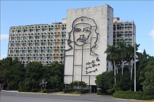 체 게바라의 초상화는 혁명 광장에 있는 쿠바 내무부 건물 외벽에 철골로 만들어져 걸려 있다.