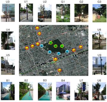 <선정릉 녹지와 주변의 기온 관측 현황도>