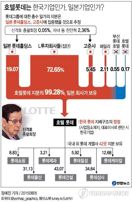 L투자회사들이 호텔롯데 지분 72.65%를 보유하고 있는 만큼 L투자회사들의 소유주가 결국 한국 롯데그룹을 지배할 수 있게 되는 셈이다.