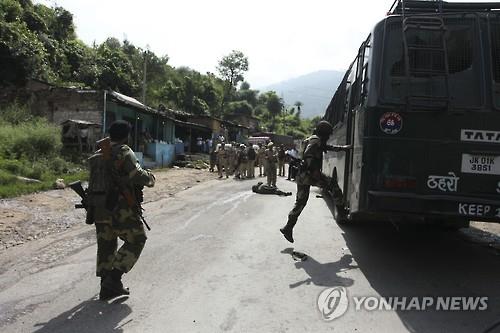 | △ 5일 인도 잠무-카슈미르 주 우담푸르 인근 도로에서 인도 국경수비대원과 무장 괴한이 교전을 벌였다.(AP=연합뉴스) |