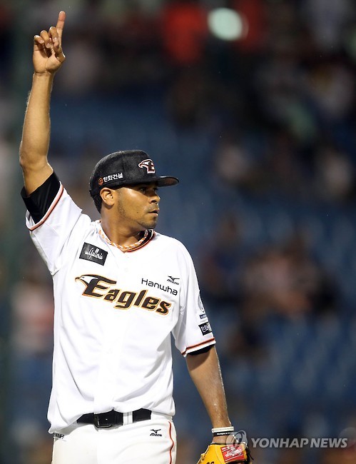 (서울=연합뉴스) 신창용 기자 = 한화 이글스의 '가을 야구'를 향한 마지막 승부수가 통했다. 메이저리그 뉴욕 양키스 출신의 우완 투수 에스밀 로저스가 한화를 위기에서 구해냈다.