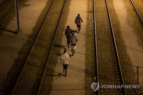 (파리=연합뉴스) 박성진 특파원 = 한 아프리카 난민이 목숨을 걸고 영국과 프랑스를 잇는 해저터널인 유로터널을 걸어 건너다가 영국 경찰에게 붙잡혔다.