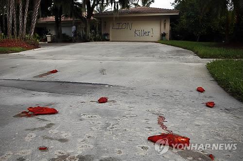 6일 미국 일간지 USA 투데이에 따르면, 플로리다 주 남서쪽에 있는 마르코 섬의 치과 의사 월터 파머(55)의 별장 차고에서 '사자 킬러'라는 낙서가 전날 발견됐다.