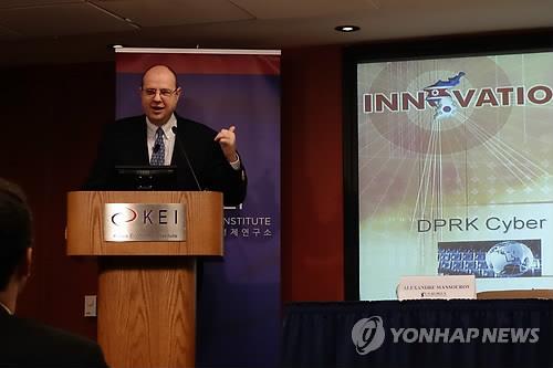 | △ 지난해 12월 워싱턴DC 한미경제연구소(KEI)에서 강연하는 알렉산드르 만수로프 존스홉킨스대 겸임교수 |