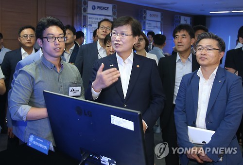 | △ '창조경제 데모데이' (서울=연합뉴스) 임헌정 기자 = 최양희 미래창조과학부 장관이 7일 서울 종로구 창조경제혁신센터에서 열린 '창조경제 데모데이'에서 업체 관계자로부터 설명을 듣고 있다. |