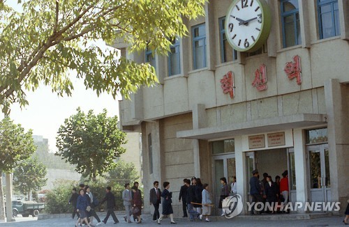 | △ 북한, 광복절부터 표준시 변경 (서울=연합뉴스) 북한은 7일 "일본 제국주의자들이 우리나라 표준시를 빼앗았다"며 광복 70주년을 맞는 오는 15일부터 표준시간을 기존에 사용하던 동경시보다 30분 늦춰 사용한다고 발표했다. 사진은 평양시내의 혁신 역사. << 연합뉴스 DB >> |