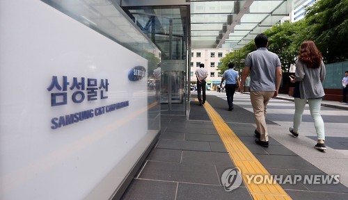이날 유가증권시장에서 삼성물산은 전날보다 5.25% 하락한 5만2천300원으로 거래를 마쳤다.