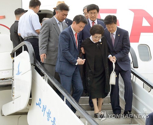 이희호 여사 3박4일 방북 마치고 귀국(속보)