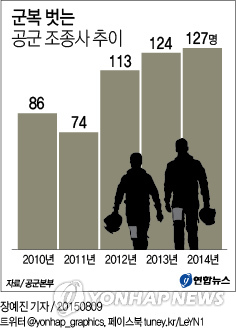 의무복무 기간이 13년에서 15년으로 늘어나면서 2010년 86명, 2011년 74명으로 감소했지만 2012년부터 다시 느는 추세다.