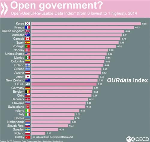 한국은 국가 포털사이트에서 공공 지출, 선거 결과 등을 모두 제공해 OECD 조사대상국 평균인 0.58을 훌쩍 넘어섰다.