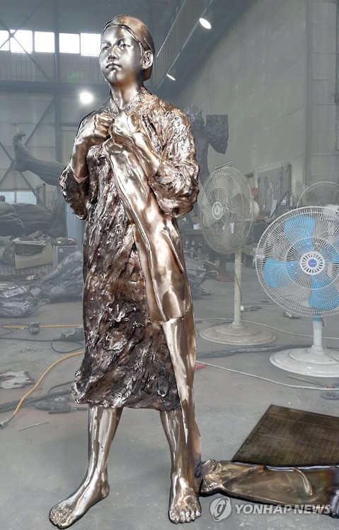 (창원=연합뉴스) 이정훈 기자 = 일제로부터 국권을 되찾은 70번째 광복절을 코앞에 두고 경남 창원에서는 다 만들어진 위안부 소녀상이 제자리를 찾지 못하고 있다.