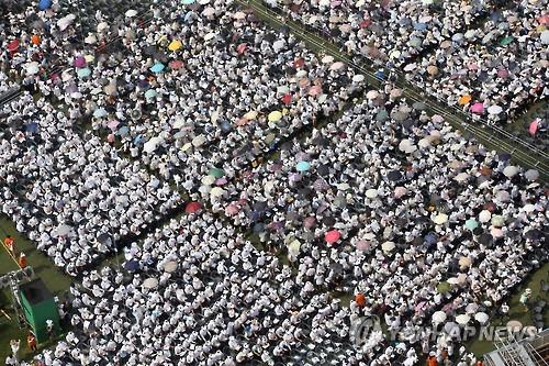 "통일을 향해" 폭염 속에 울려펴진 개신교인 기도