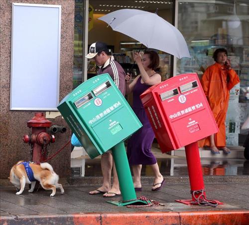 | △ 태풍 '사우델로르'의 강풍으로 타이베이시에 있는 한 우체통이 한쪽으로 기울어졌다. (대만 중앙통신사(CNA) 보도 캡쳐) |