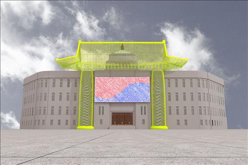 서울시는 서울도서관 외벽에 기와지붕과 배흘림기둥으로 꾸민 전시물을 설치하고 10일 공개한다고 9일 밝혔다.