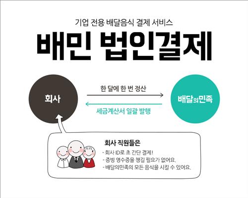 배달의민족을 운영하는 우아한형제들은 기업 전용 배달음식 결제 서비스 '배민 법인결제'를 내놓는다고 11일 밝혔다.