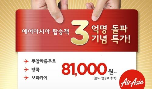 에어아시아 누적 탑승객 3억명 돌파 특가행사