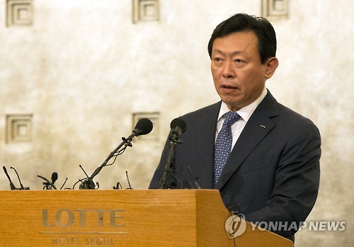 | △ 기자회견하는 신동빈 롯데 회장 (서울=연합뉴스) 윤동진 기자 = 롯데그룹 신동빈 회장이 11일 오전 서울 중구 롯데호텔에서 최근 불거진 경영권 분쟁과 관련해 기자회견을 하고 있다. |