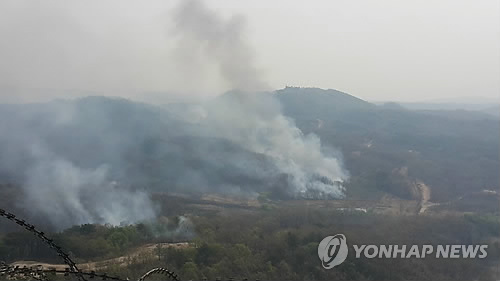 | △ DMZ산불...북한군의 화전 개발 및 화공작전이 산불의 원인으로 추정된다 (연합뉴스 자료사진) |
