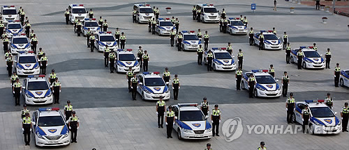 | △ 경찰청은 기동순찰대를 이달 말까지 전국의 19개 경찰서에 추가로 설치하고 야간 시간대에 집중 운영하기로 했다. 사진은 지난해 8월 수도권 기동순찰대 합동 발대식. (연합뉴스 자료사진) |