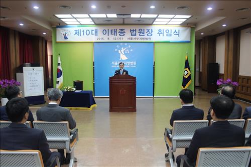 (서울=연합뉴스) 임기창 기자 = 대법관에 임명제청된 이기택 전 서울서부지방법원장 후임으로 이태종(54·사법연수원 15기) 신임 법원장이 12일 취임했다.
