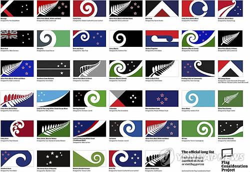 (웰링턴<뉴질랜드> AP·AFP=연합뉴스) 국기 변경을 추진하는 뉴질랜드가 12일(현지시간) 새 국기 디자인 후보작 40개를 공개했다.